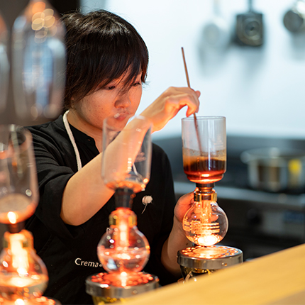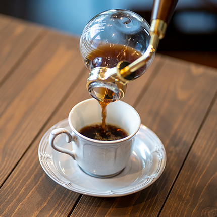自家焙煎ブレンドコーヒーをサイフォン式で丁寧に抽出します